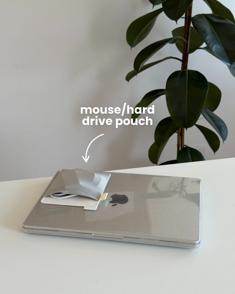 This mouse pouch is perfect for storing essentials on the go. I love using it to store my hard drive.