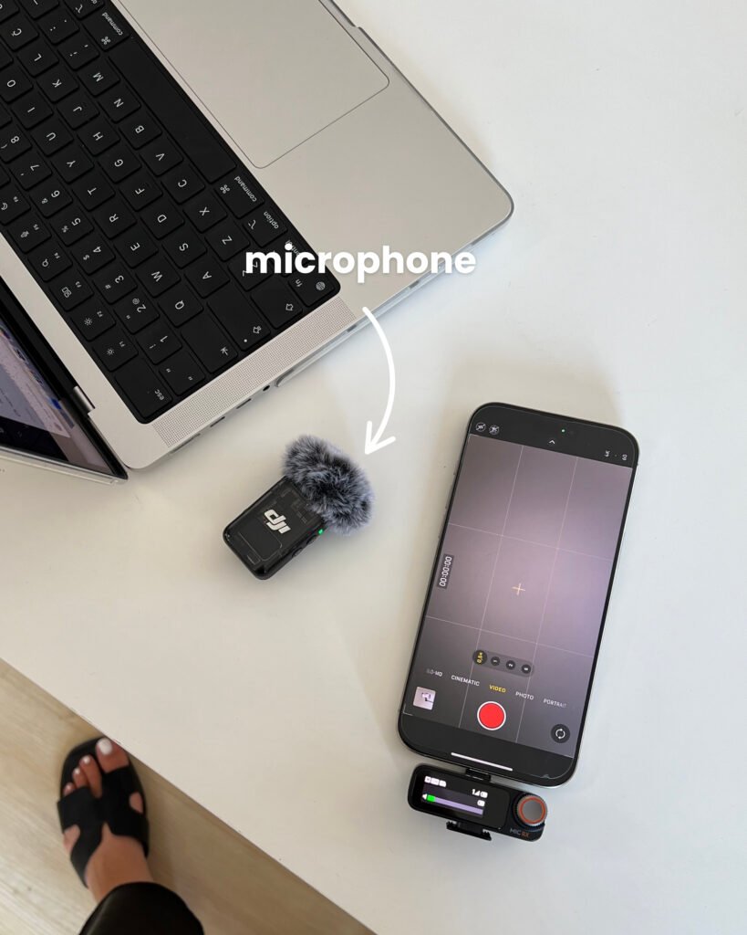This is my fav microphone ever! It’s the DJI MIC2 set that comes in a charging box with 2 mics and a receiver that can be plugged in your camera/phone/computer. It’s super easy to use and the quality is amazing.